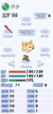 そしてですね、この子、ステが上から10,12,5,5,10…思いっきりCON型ですかそうですか。DEFペットになるんですかね(